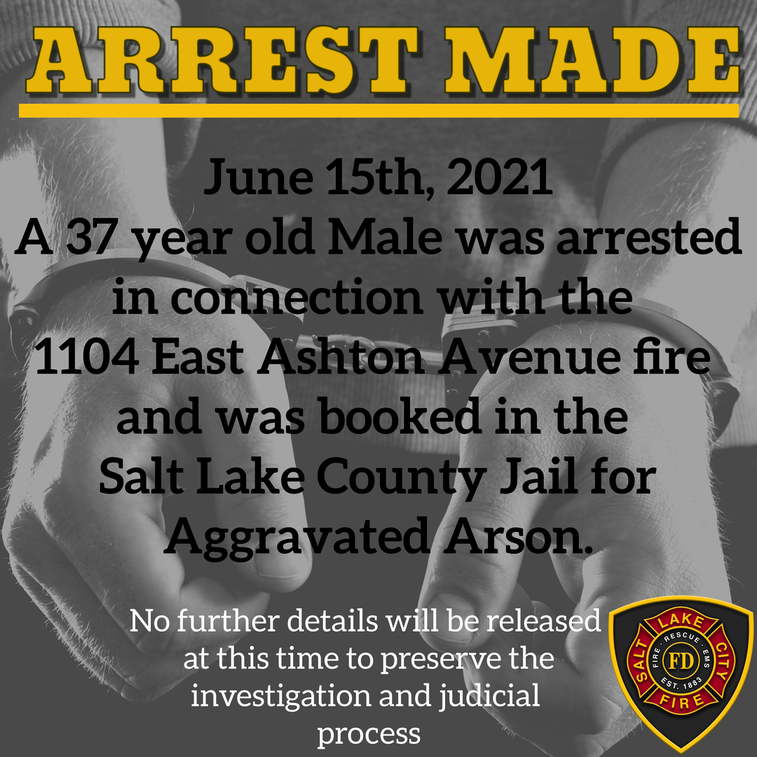 Salt Lake City Fire Department On Twitter Arrest Made A 37 Year Old Male Was Arrested In Connection With The 1104 East Ashton Avenue Fire And Was Booked In The Salt Lake